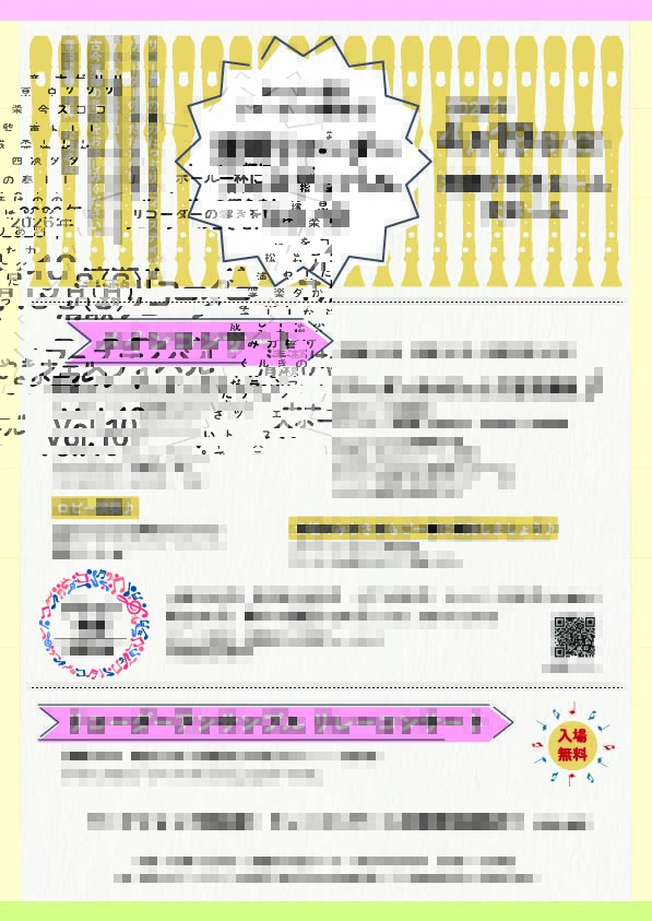 40名のリコーダー愛好家で構成される清瀬リコーダーオーケストラによる合奏や、プロのリコーダー奏者4名による松浦タカノリ四重奏団の華やかなステージもございます。ヴィヴァルディの「春」やディズニー名曲集、さらに本公演で初演される木村知之の「哀しみのコラール」など、幅広いプログラムとなっています。ロビーでのウェルカム演奏や、観客の皆様もリコーダーを持参して参加できる「喜びの歌」の合奏など、会場全体が一体となってあたたかなリコーダーの音色に包まれる一日となります。