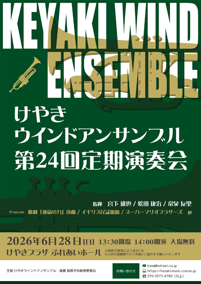 年2回、けやきプラザふれあいホールの他、近隣地区で演奏会を行なっております。