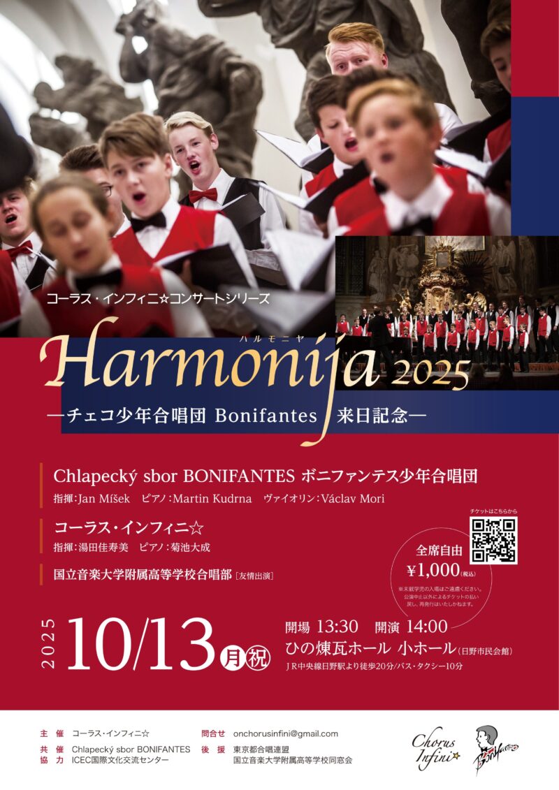 コーラス・インフィニ☆コンサートシリーズ Harmonija2025-チェコ少年合唱団Bonifantes来日記念-