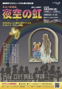 ミュージカル「あたたかい心」 ハッピー「提督さまがくる!」町の人たちはお迎えの準備に大忙し。貧しい花売り娘のローラとクリアは病気のおかあさんを助けて花を売っています。町の子どもたちはそんな2人を仲間外れにしますが…。美しく着飾った町の人々の中で、ハッ […] Read more »