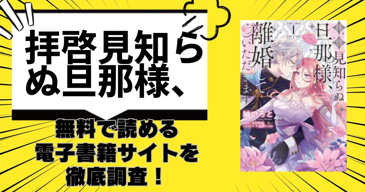 結論、無料で漫画「拝啓見知らぬ旦那様、離婚していただきます」を全巻無料で読める電子書籍サイト・漫画アプリはありませんでしたが、一部無料や試し読み、セール・ポイントでお得に読める電子書籍サイト・漫画アプリがあります。