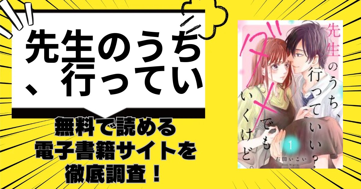 無料で漫画「先生のうち、行っていい?ダメでもいくけど。」を読めるかどうか調査したところ結論、「先生のうち、行っていい?ダメでもいくけど。」を全巻無料で読める電子書籍サイト・漫画アプリはありませんでしたが、一部無料や試し読み、セール・ポイントでお得に読める電子書籍サイト・漫画アプリがあります。