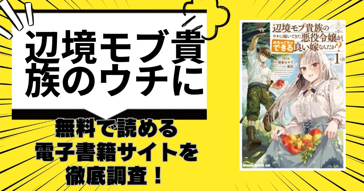 - 漫画「辺境モブ貴族のウチに嫁いできた悪役令嬢が、めちゃくちゃできる良い嫁なんだが?」を試し読み最安値で読める電子書籍サイトは?