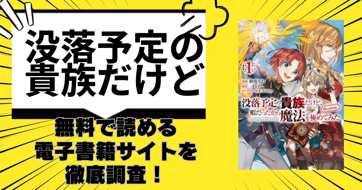 漫画「没落予定の貴族だけど、暇だったから魔法を極めてみた」は電子書籍サイトですぐ読むことが可能です。漫画「没落予定の貴族だけど、暇だったから魔法を極めてみた」を無料読める電子書籍サイトを調査しました。