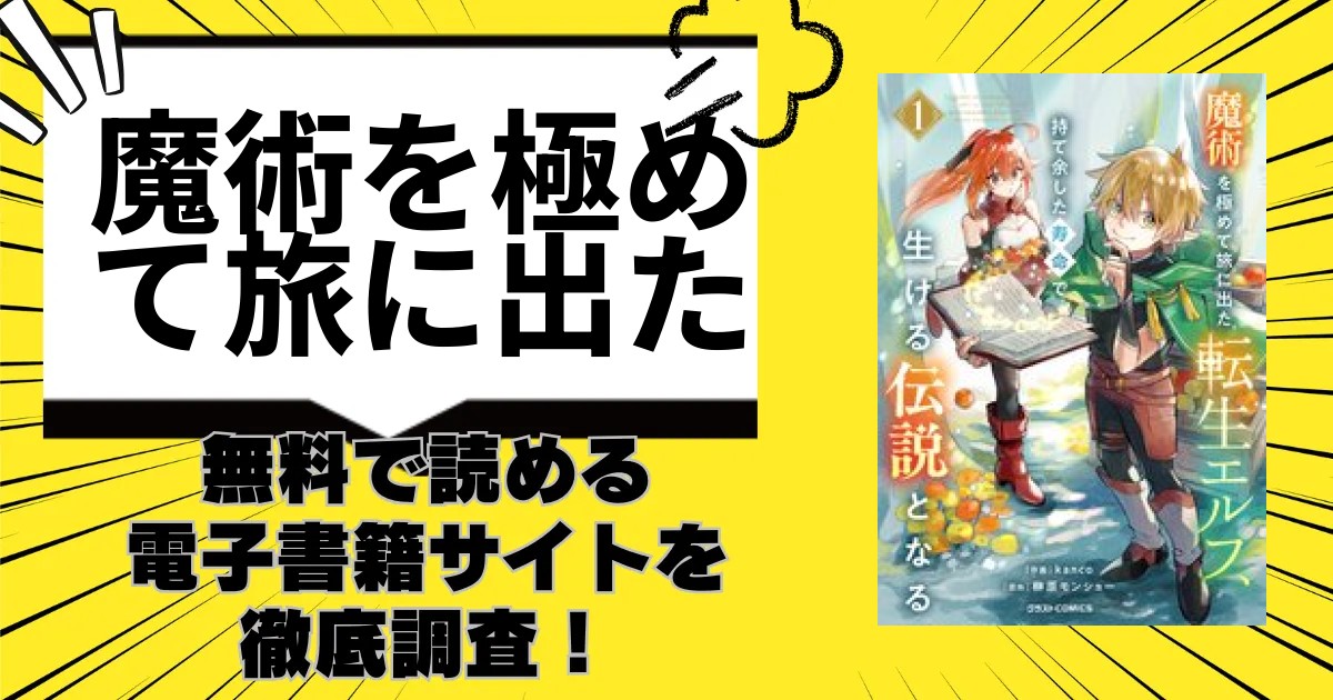 - 漫画「魔術を極めて旅に出た転生エルフ、持て余した寿命で生ける伝説となる」を全巻無料で読めるサイトはある?