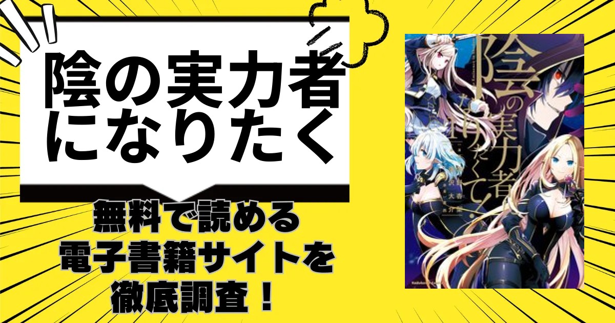 漫画「陰の実力者になりたくて!」は電子書籍サイトですぐ読むことが可能です。漫画「陰の実力者になりたくて!」を無料読める電子書籍サイトを調査しました。