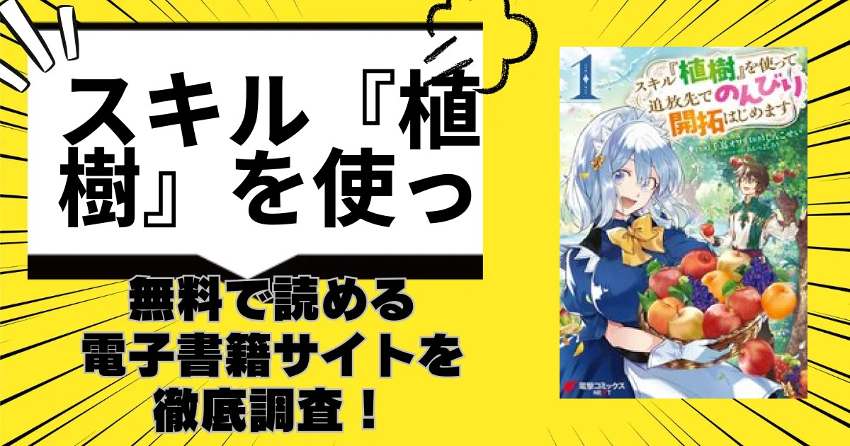 結論、無料で漫画「スキル『植樹』を使って追放先でのんびり開拓はじめます」を全巻無料で読める電子書籍サイト・漫画アプリはありませんでしたが、一部無料や試し読み、セール・ポイントでお得に読める電子書籍サイト・漫画アプリがあります。