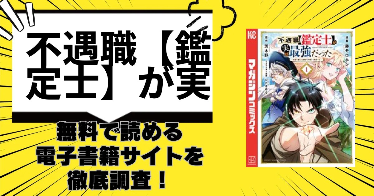 この記事では漫画「不遇職【鑑定士】が実は最強だった」をどのくらい無料で読めるか、またできる安くお得に読むための電子書籍サイトをご紹介致します。