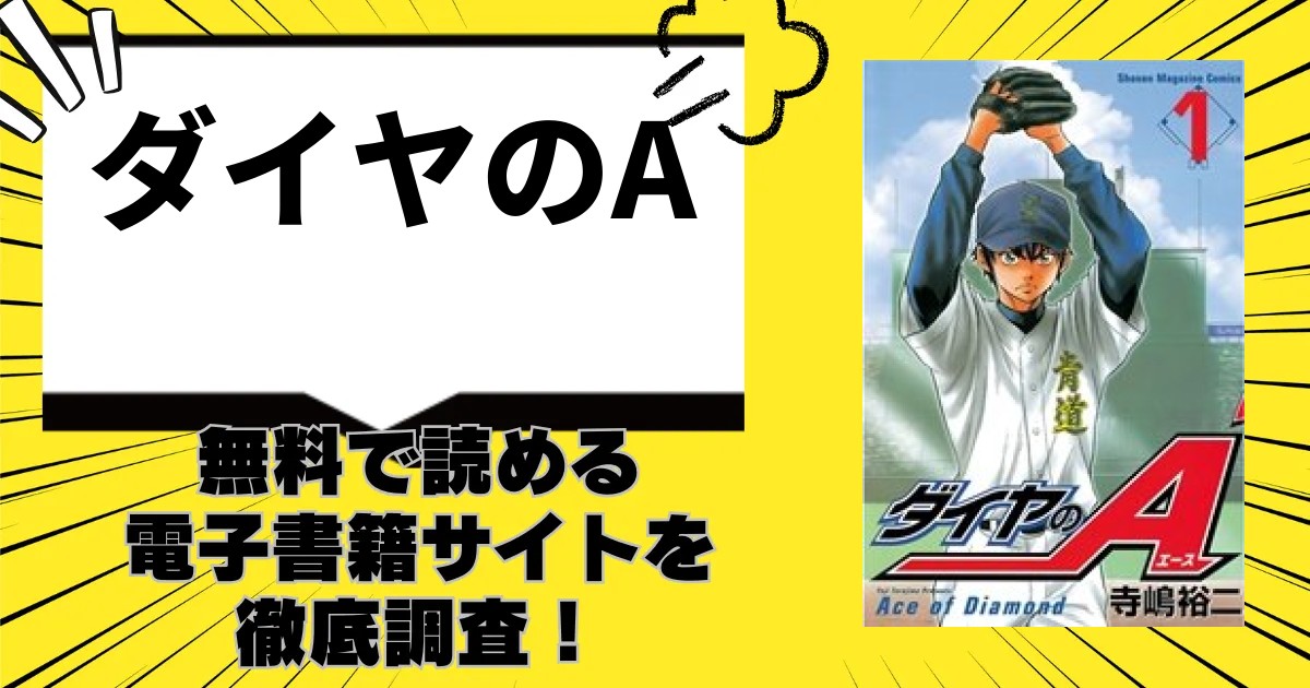 無料で漫画「ダイヤのA」を読めるかどうか調査したところ結論、「ダイヤのA」を全巻無料で読める電子書籍サイト・漫画アプリはありませんでしたが、一部無料や試し読み、セール・ポイントでお得に読める電子書籍サイト・漫画アプリがあります。