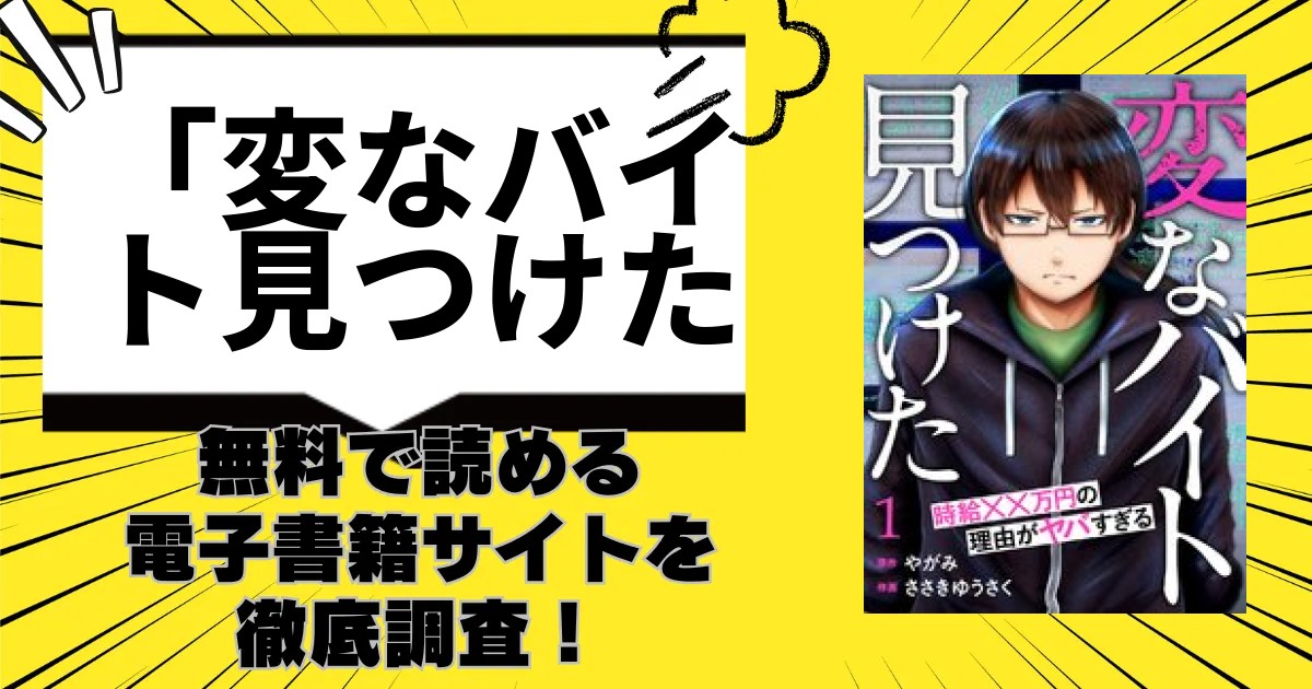 この記事では漫画「「変なバイト見つけた」時給××万円の理由がヤバすぎる」をどのくらい無料で読めるか、またできる安くお得に読むための電子書籍サイトをご紹介致します。
