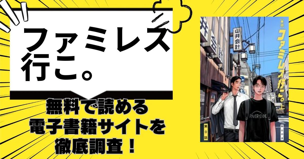 この記事では漫画「ファミレス行こ。」をどのくらい無料で読めるか、またできる安くお得に読むための電子書籍サイトをご紹介致します。