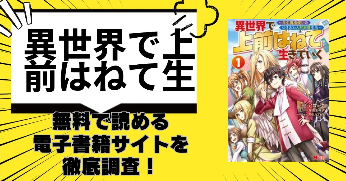 結論、無料で漫画「異世界で 上前はねて 生きていく」を全巻無料で読める電子書籍サイト・漫画アプリはありませんでしたが、一部無料や試し読み、セール・ポイントでお得に読める電子書籍サイト・漫画アプリがあります。