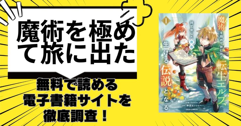 漫画「魔術を極めて旅に出た転生エルフ、持て余した寿命で生ける伝説となる」を無料で読める電子書籍サイトを調査!raw/zipの危険性や最新話が読める最安値サイトについて