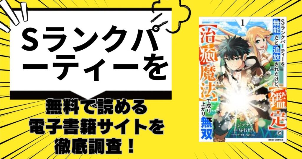漫画「Sランクパーティーを無能だと追放されたけど、【鑑定】と【治癒魔法】で成り上がり無双」を全巻無料で読める電子書籍サイトを徹底調査!raw(漫画raw)の危険性についても解説