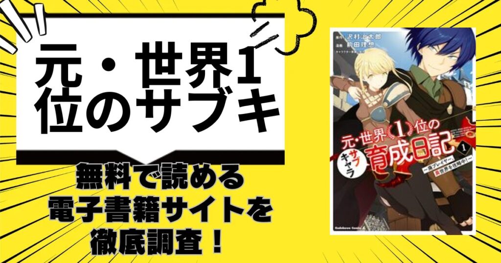 漫画「元・世界1位のサブキャラ育成日記 ~廃プレイヤー、異世界を攻略中!~」を無料で読める電子書籍サイトを調査!raw/zipの危険性や最新話が読める最安値サイトについて